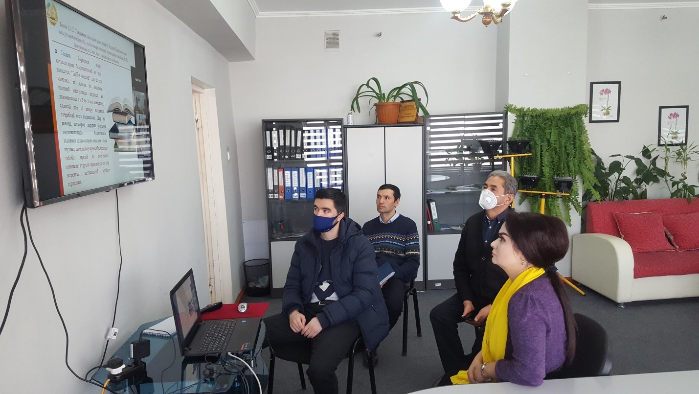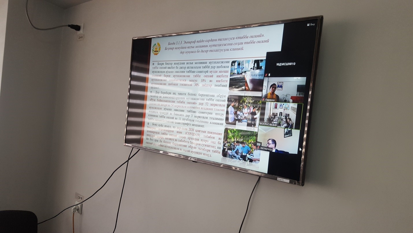 Иштироки роҳбарияти МД «Маркази ҷумҳуриявии ташаккули тарзи ҳаёти солим»-и Вазорати тандурустӣ ва ҳифзи иҷтимоии аҳолии Ҷумҳурии Тоҷикистон Мухтарова Парвина Шавкатовна ва муовини директори Марказ Пиров Даврон Дониёрович дар ҷаласаи онлайнии мушовараи Вазорати тандурустӣ ва ҳифзи иҷтимоии аҳолии Ҷумҳурии Тоҷикистон.
